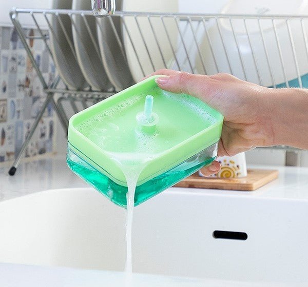 An antibacterial and hygienic kitchen soap dispenser with an original multi-use design that prevents the accumulation of bacteria. drips and water or soap spills that can mess up the kitchen. It has a quick drying stand for the sponge which allows it to drain through its ventilation holes. It also has a drip tray to easily remove the water that drips from the sponge. This compact manual dispenser is very convenient and easy to use. and is very useful for washing dishes. etc. The soap is placed directly onto the sponge by pressing it against the dispenser. It also helps to keep the kitchen tidy. thereby saving time and effort. The soap container has a capacity of 330 ml and is transparent. to allow you to see how much soap there is at all times. It can be used with any type of sponge. scourer. dishcloth. etc. and can be taken apart completely. making it easy to clean.