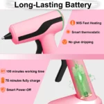 2200Amh Pink Cordless Hot Glue Gun Kit Rechargeable, wooden stick heats up quickly.