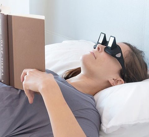 These novel glasses are very comfortable and practical and allow you to watch television or read a book while you’re lying horizontally on your bed or sofa. with no need to raise your neck. Thus. they avoid visual fatigue and the neck pain caused by bad posture. Furthermore. they are the perfect solution for bedridden patients in hospitals as well as for people with reduced mobility or psychomotorical problems.
