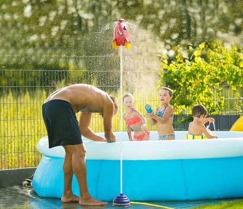 ✔ OUTDOOR EXCITEMENT: AquaRoc™ is suitable for use in various outdoor fields. such as patios. lawns. yards. gardens. swimming pools. or birthday parties. and perfect for kids or pets to play with. It can launch as high as 200 cm (6.5 feet) into the air and spray water into its surrounding area. It is also a very useful tool for watering the garden.