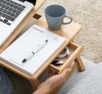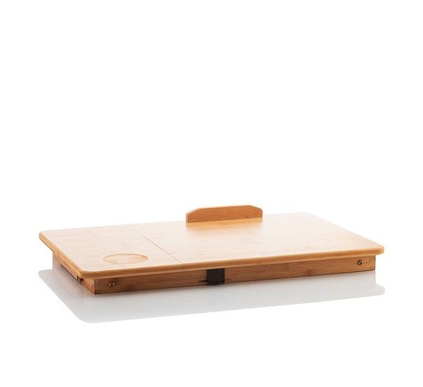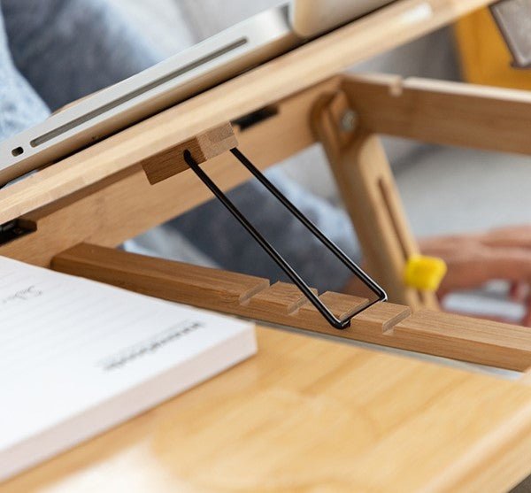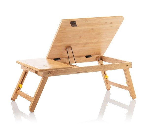 A versatile bamboo side table that is easy to fold and store and is very useful for reading. writing. eating. or working on the laptop on the sofa. bed. carpet. etc.