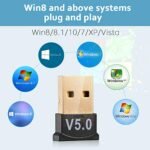 More Stable and Smooth PC Bluetooth USB adapter is equipped with an intelligent 5.0 Bluetooth chip. Supports 3Mbps transmission rate. provides higher speed file and audio transmission. faster than Bluetooth 4.0 transmission. lower power consumption. more stable signal.