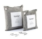 A set of 2 activated bamboo charcoal linen bags of different weights and sizes that purify the air and absorb moisture and bad odours naturally without harmful chemicals and pollutants. Two metal hooks are included for hanging which makes them easy to place anywhere you wish. They are reusable. long-lasting (2 years) and are easily reactivated by exposing them to the sun once a month for approx. 3 to 5 hours. so that they regain their purifying properties. Also. once its useful life has expired. its content can be used as a plant fertiliser. A more effective. eco-friendly and natural alternative for enjoying a fresh. clean. healthy and more breathable environment. Ideal for wardrobes. shoe racks. drawers. bathrooms. kitchens. cars. etc.