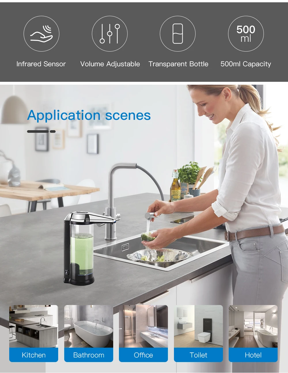 ✔ Stylish & Hygienic: Cleansely™ is equally suited for homes. schools and senior centers. businesses and anywhere else people need to keep their hands clean and sanitized. The premium dispenser also helps to keep the bathroom or kitchen mess-free. while also keeping how much soap is used more firmly under control. reducing waste.
