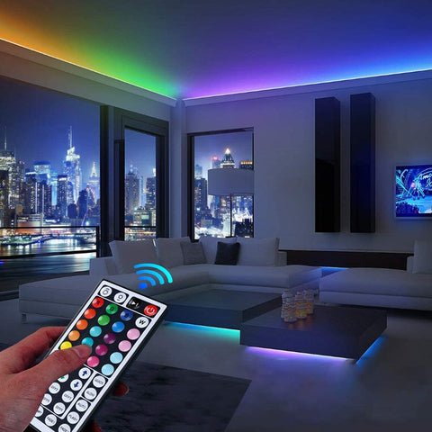 ✔ REMOTE CONTROL: Control it freely with a 4-key IR remote that allows you to choose colors. adjustable brightness and multiple lighting modes to fit room mood. (remote range: 10m) You can easily switch the lights on/off. adjust brightness. or change colors at the touch of a button.