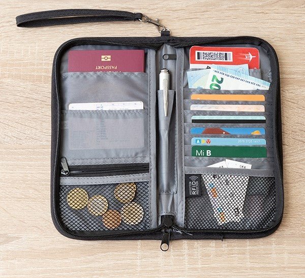 A safety organiser case. ideal for storing documents. passports. cards. money. keys. etc.
