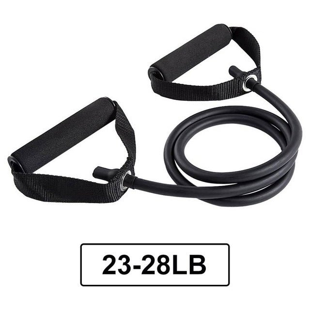 DIFFERENT COLOR ADJUSTABLE RESISTANCE BANDS: Yellow (10 lbs.). Blue (20 lbs.). Green (30 lbs.). Black (40 lbs.). Red(50 lbs.).All exercise bands are 48″ in length. and can be used alone stacked in any combination to a maximum equivalent of 150 lbs.