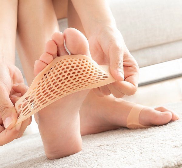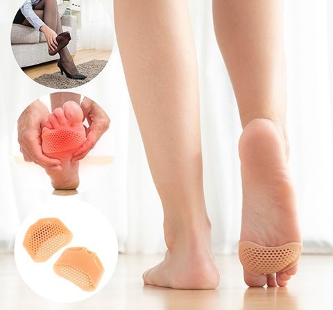 A set of 2 soft. silicone gel metatarsal pads that provide a great sense of relaxation and comfort. as they prevent and relieve pain and inflammation in the metatarsal area (the front part of the foot) and prevent hardnesses and callouses from forming. They are reusable and can be cleaned easily with warm water and soap. They are ideal for people who stand or walk for long periods as they provide cushioning. and they are highly recommended for practicing sports. Because of their highly elastic and flexible universal design. they are easily adaptable to all types of feet and footwear. Because of their many ventilation holes. they are also highly breathable and allow the air to circulate and soak up perspiration thereby avoiding bad odours.