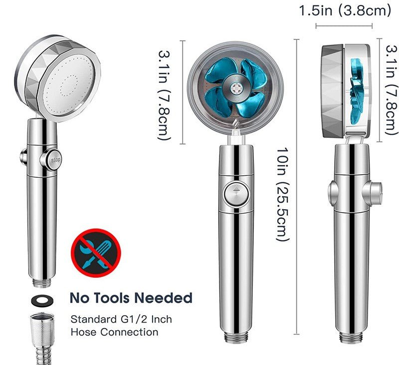 ✔ HIGH QUALITY ABS MATERIAL: The Turbo Propeller Shower Head is built to last. Its sleek and modern design adds a touch of elegance to any bathroom decor. Enjoy a durable and stylish showerhead that stands the test of time.✔ EASY TO INSTALL: No need for professional installation – JetFlo™ is designed for easy. tool-free installation. Simply attach it to any standard shower arm and enjoy immediate results. The filter is easily washable and replaceable. ensuring long-lasting performance and convenience.