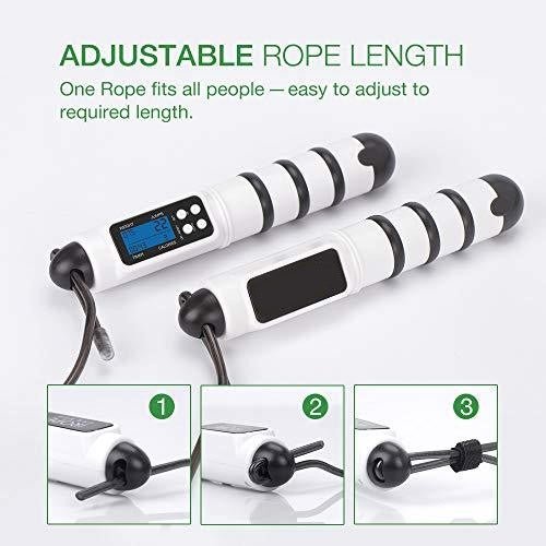 Smart Counter: With HD LED display on this speed jump rope. which shows Timer. Weight. Calorie and Circles. simply set your weight. precisely counts time and it will show the number of circles you jump and the calories been burn. That would help to achieve better fitness result.