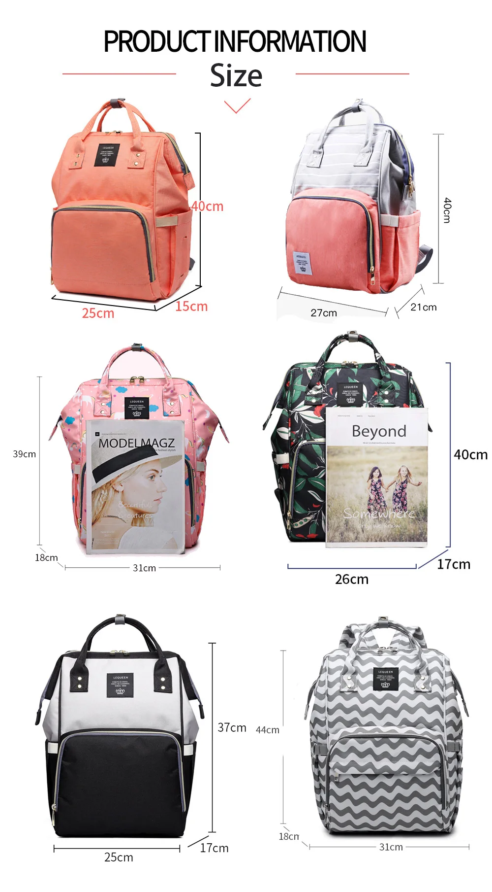 LEQUEEN Diaper Bags are made of waterproof material. built to last. easy to access. organized. easy to clean and carry. It is a perfect choice for mom and dad. besides the good-looking. the most important is practical. which can carry all of your baby essentials with you — helping you to stay organized and reduce stress. Neutral Design style makes Dad carry it too and he might even be excited to do so! They’ll also last you way past the baby phase because you can carry a backpack really no matter how old your kid is! Lequeen helps you save money and give you the best choice!