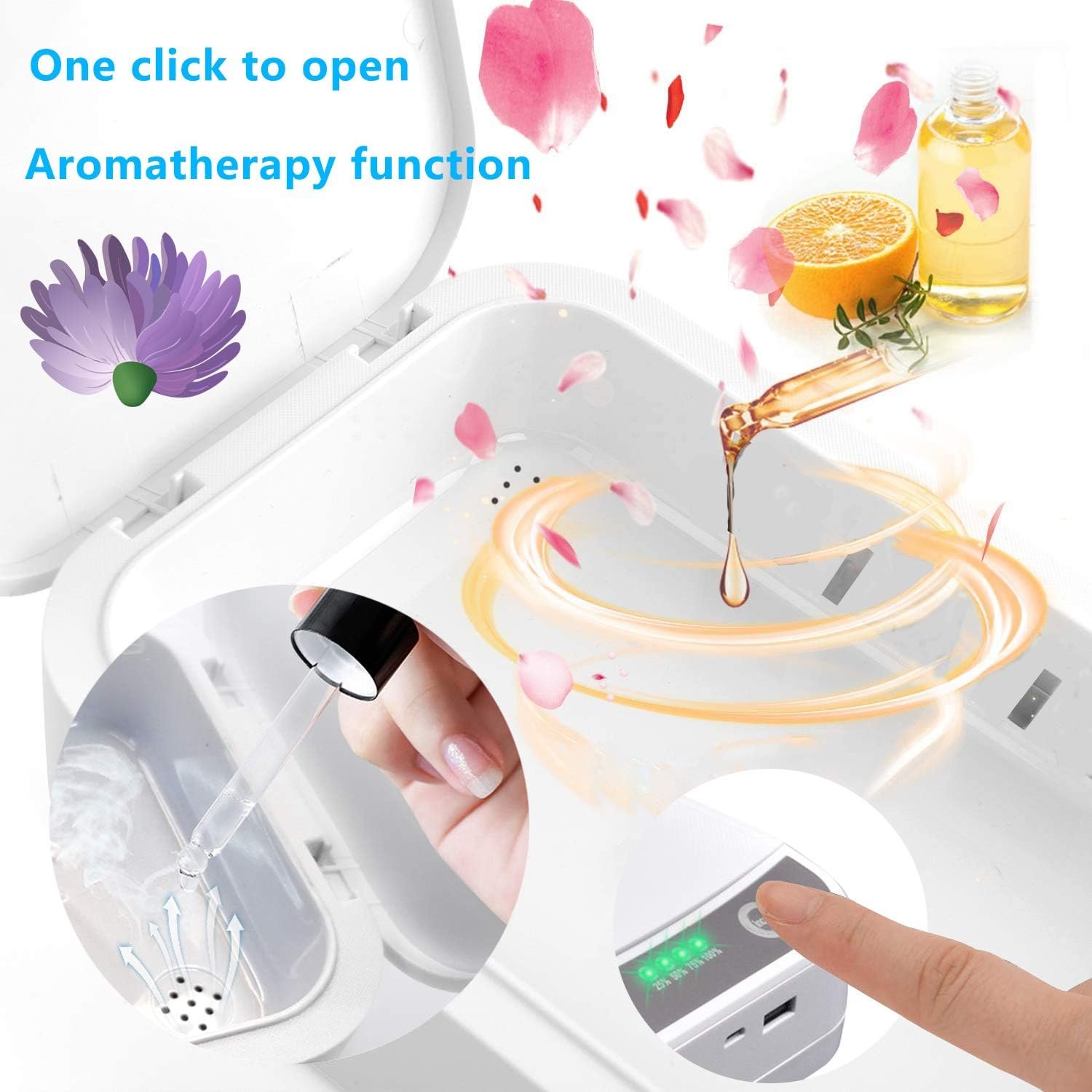 ✔ Aromatherapy Diffuser: Comes with aromatherapy function. Put some essential oil into the aromatherapy inlet to start having an aroma humidifier for your phones and items in the sanitizer box. Your phones and items will smell very wonderful!