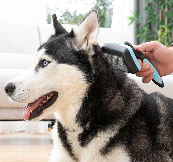 A pet brush with an innovative design of retractable bristles that makes cleaning both the animal and the brush easier. It optimizes effectiveness and provides a gentle massage. This large brush enables faster and more agile grooming. The firm stainless steel bristles provide more effective grooming while also gently massaging. The ergonomic handle enables a greater and better grip to enable use with total comfort. It is very easy to use: after brushing the pet. to easily remove the hair trapped in the brush you simply press the button that retracts the bristles. leaving them inside the brush. Ideal for animals with medium and long hair.