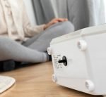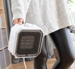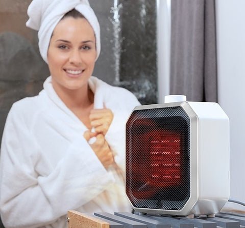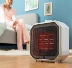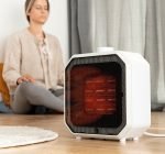 A portable ceramic heater which is very convenient for use anywhere. It provides heat quickly and easily by distributing it evenly throughout the room. It has two power settings. protection against overheating. and a safety anti-tipping system which activates an automatic shut-off if it is dropped or tipped over. Ideal for use on a desk. table. on the floor. etc. to keep you warm while you work. read. watch television. etc.