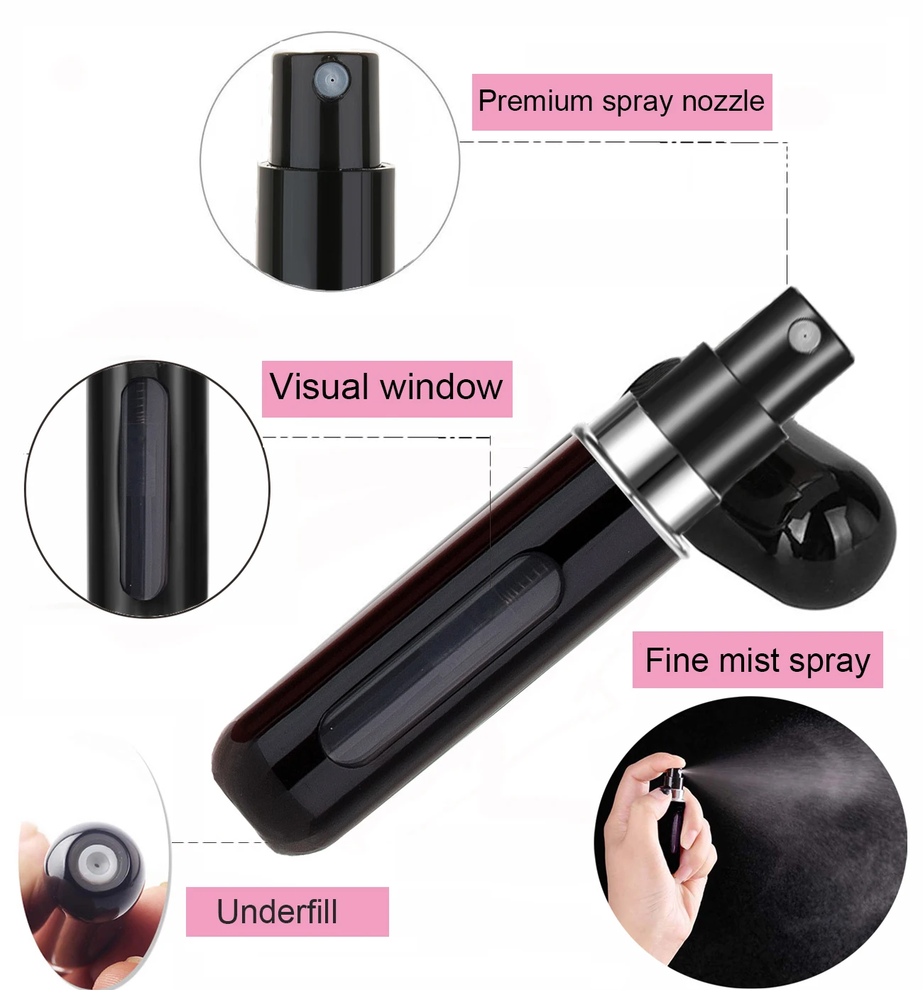 Simple And Convenient: This Perfume Atomizer Bottle is handy to travel size. Easy to use and easy to fill/refill. no leakage. Just press the bottom against your favorite perfume gauge and keep clicking until it is refilled.