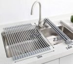 ✔ SPACE SAVER: Save valuable countertop space and avoid water stains on your countertops. Rackso™ is a great kitchen sink organizer. Unroll above the sink for air-drying. When not in use. it can quickly roll up for fast and easy storage. or tuck behind the kitchen faucet when not in use.