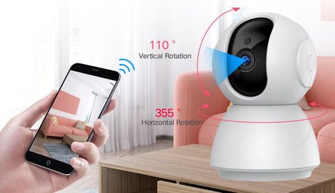 355° PANORAMIC & 110°  TILTSmooth 355 degree panoramic and110 degree tilt allows you to enjoy a sweeping view of the entire room. Control the movements and angles of the camera easily with your phone and view any angle you wish to.