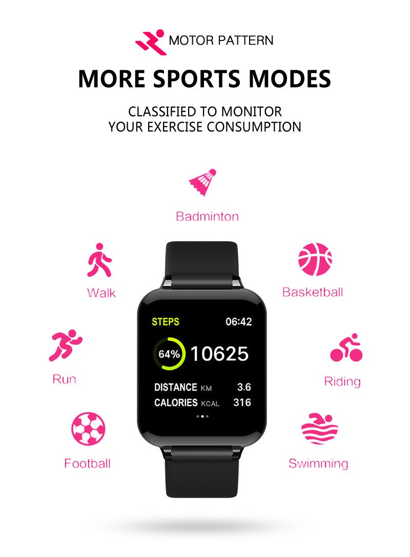 POWERFUL FUNCTION: Smartwatch with color screen support for calls reminder. SMS alerts push. remote camera. music control. heart rate monitor. blood pressure monitor. sedentary reminder. calorie calculation. step counter. stopwatch. custom screensaver. more exercise mode like walking. running. cycling. skipping. badminton. basketball. football.