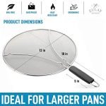 Sturdy Long Lasting Construction: Stainless steel means our skillet cover fryer screen will stand up to heat and abuse for a long time. absorbing sauce and fat. Heavy duty BPA free materials will not rust. discolor. or warp. Easy clean and dishwasher safe.