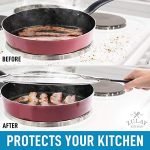 Keeps You Protected: When you’re frying bacon. onions. chicken. anything really. hot grease and oil can fly out of the pan and get things very messy. plus you can burn your skin or even your eyes. Be clean and protected with our grease catcher splatter guard shield that stops almost 100% of splatter and mist. while letting the steam out when cooking. Great for deep frying. wok stir fry and more.