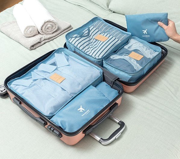 A complete set of 6 organiser bags for suitcases. ideal for storing clothes. accessories. towels. shoes. cosmetics. etc. These bags are perfect to make it easier to organise your luggage in the suitcase. as they are all different sizes and types. allowing you to optimise the order and space. All of them can be opened with a zip. The three bags that have a mesh and handle are perfect for clothes. since they allow you to view the contents and let your clothes breathe. The other three bags are ideal for footwear and other accessories or objects. as well as being used for whatever you need.