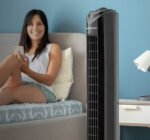 A discrete tower fan.which is very convenient and practical for combating the summer heat. Its compact design makes it easier to carry. Very easy to take anywhere and perfect for ventilating living rooms. bedrooms. etc.