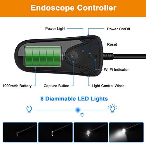 【Wide Compatibility】This endoscope has its own wifi signal. and it can be easily connected to your smartphone via WIFI. Since this wireless wifi boroscope works with both Android (Android 2.3+) and iPhone(iOS 6+) smartphones and tablets.the only thing you need to do is download and install the compatible APP “inskam” on your device. then connect the wifi.