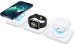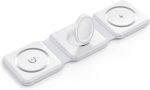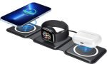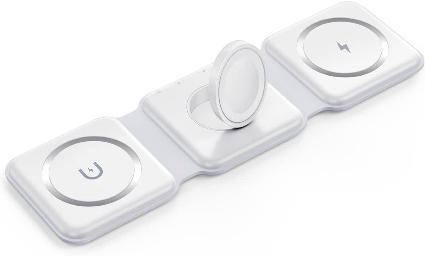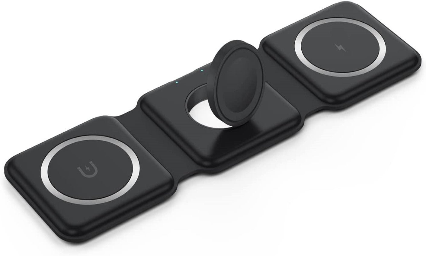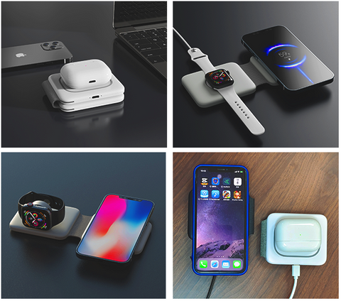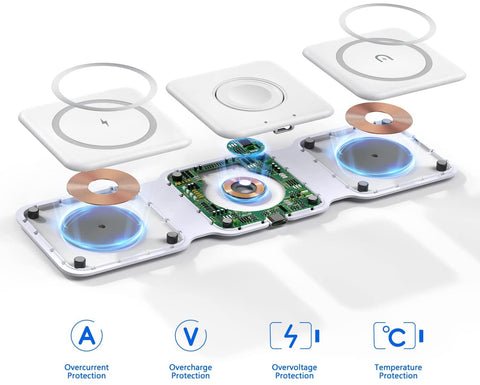 ✔ FOLDABLE DESIGN: With ease. smoothly fold it into a phone stand or lay it out flat to charge 3 devices at once. or fold it away for when it is needed. Designed with a slim interchangeable charger that is convenient for all! Inside the soft-touch silicone. holds our advanced magnetic charging technology. It can magnetically stick to iPhones with MagSafe capabilities.